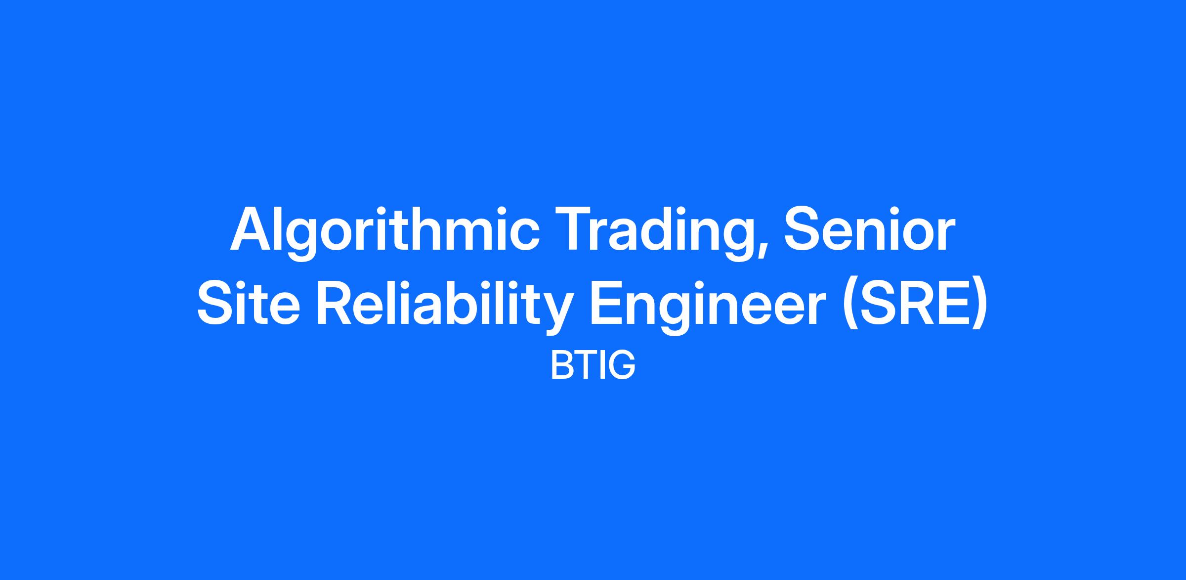 BTIG seeks a Senior Site Reliability Engineer (SRE) to join our tight-knit, high-caliber engineering team. You’ll be the first dedicated SRE, responsible for the infrastructure operating our algorithmic trading systems. This is an opportunity for someone with solid infrastructure management experience but ready for more ownership—someone eager to apply their skills and be a leader in a fast-paced, high-performance environment where daily deployments and continuous iteration are the norm. Our trading systems operate in a latency-sensitive, high-throughput on-prem environment, integrating with global exchanges, market data feeds, and client order flows. You'll work closely with developers and dev ops to design and maintain systems that are highly available, scalable, and fault tolerant.