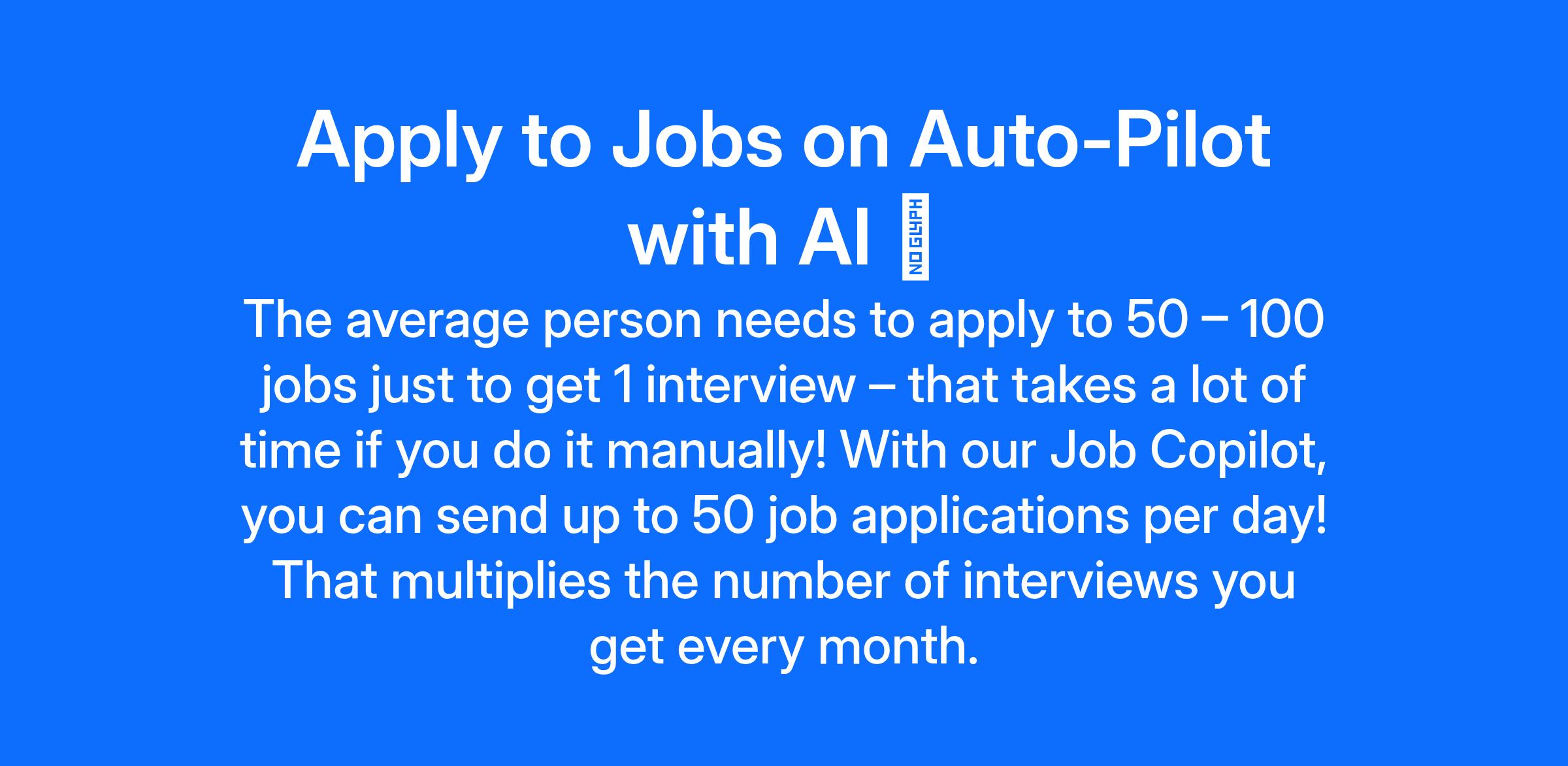 With our Job Copilot, you can send up to 50 job applications per day! That multiplies the number of interviews you get every month.
