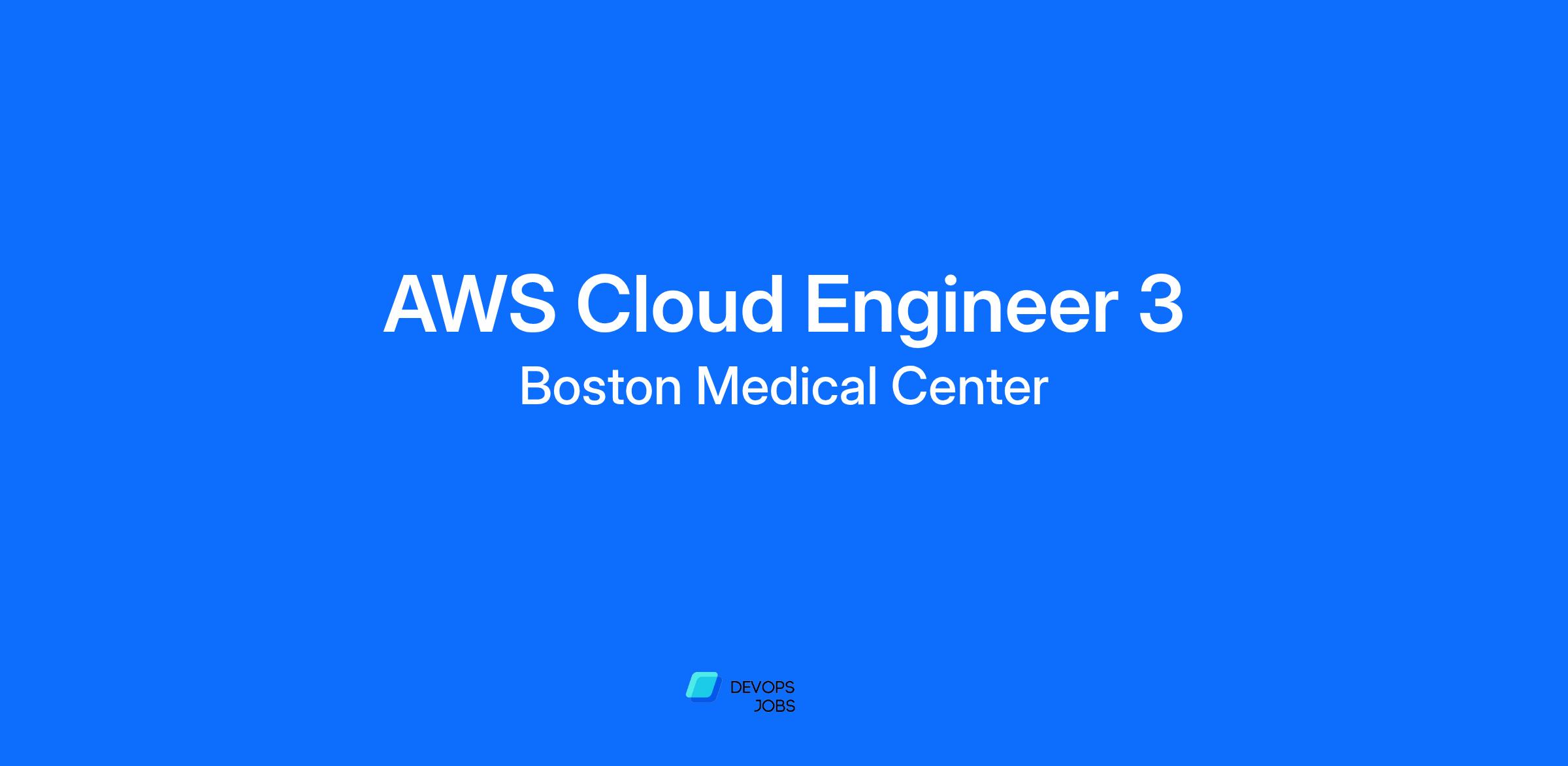 The AWS Cloud Engineer 3 role at Boston Medical Center (BMC) will be responsible for all technological and operational duties associated with AWS cloud computing; including design, planning, management, optimization, maintenance, and support. The candidate should have strong experience and understanding of public cloud technologies, specifically Amazon Web Services (AWS).