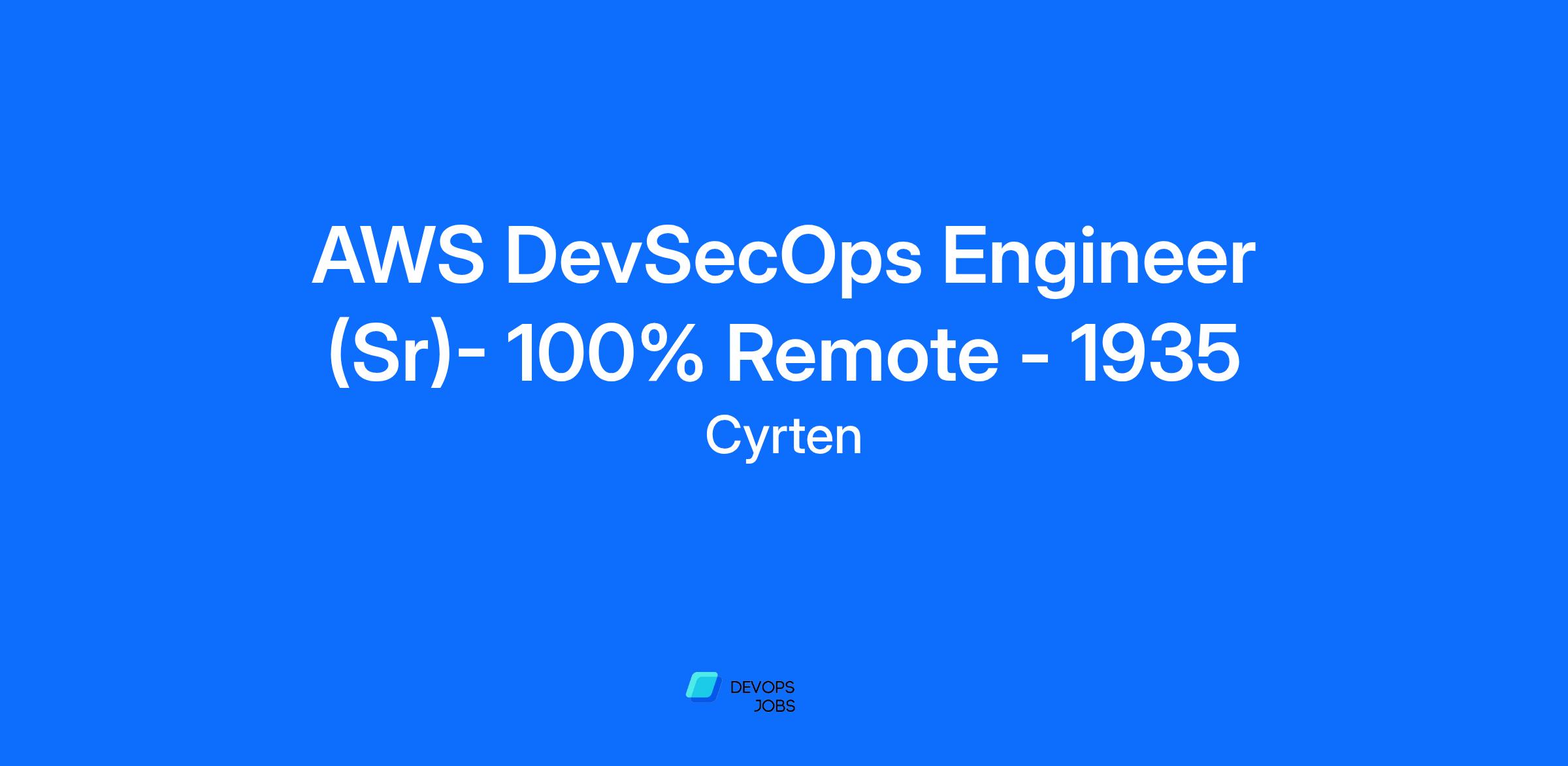 AWS DevSecOps Engineer - 100% Remote