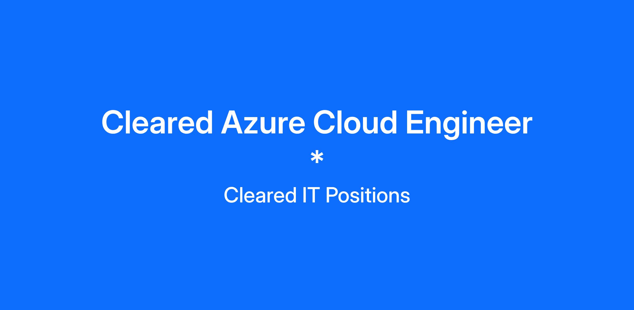 Are you looking to take the next steps in your career as an Azure Cloud Engineer? Let's chat and see if we are a good match!