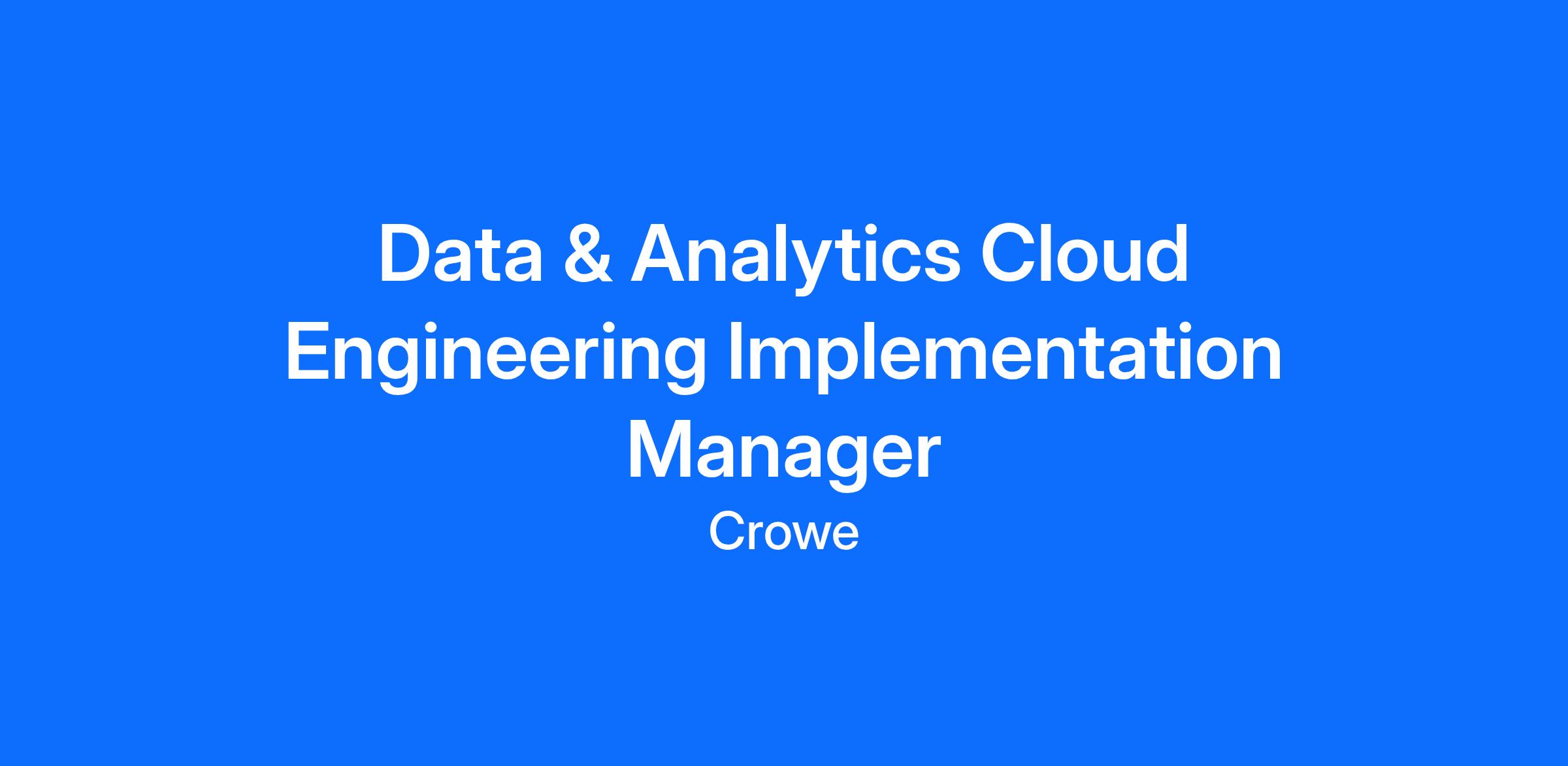 The application deadline for this role is 12/31/2026.In compliance with federal law, all persons hired will be required to verify identity and eligibility to work in the United States and to complete the required employment eligibility verification form upon hire. Crowe is not sponsoring for work authorization at this time.
