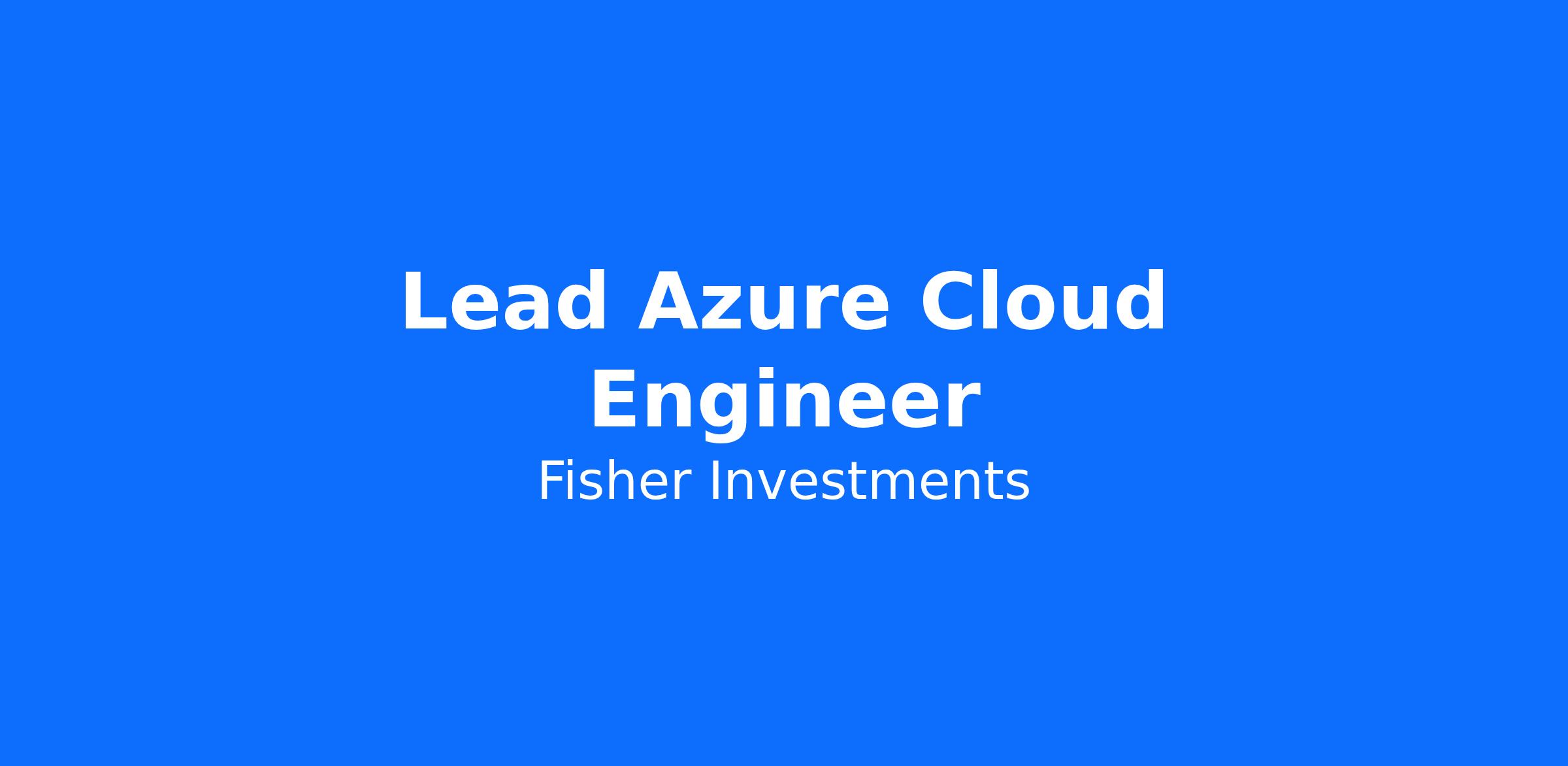 It's an exciting time to be a member of the Fisher Investments Technology Department. We're investing in the future of our firm's technology and are building our team to achieve global growth. We are looking for an Azure Technical Lead to support our Cloud Platform team. If you are looking for an opportunity to make an impact as we develop scalable and strategic solutions to support our global growth, we want to hear from you!