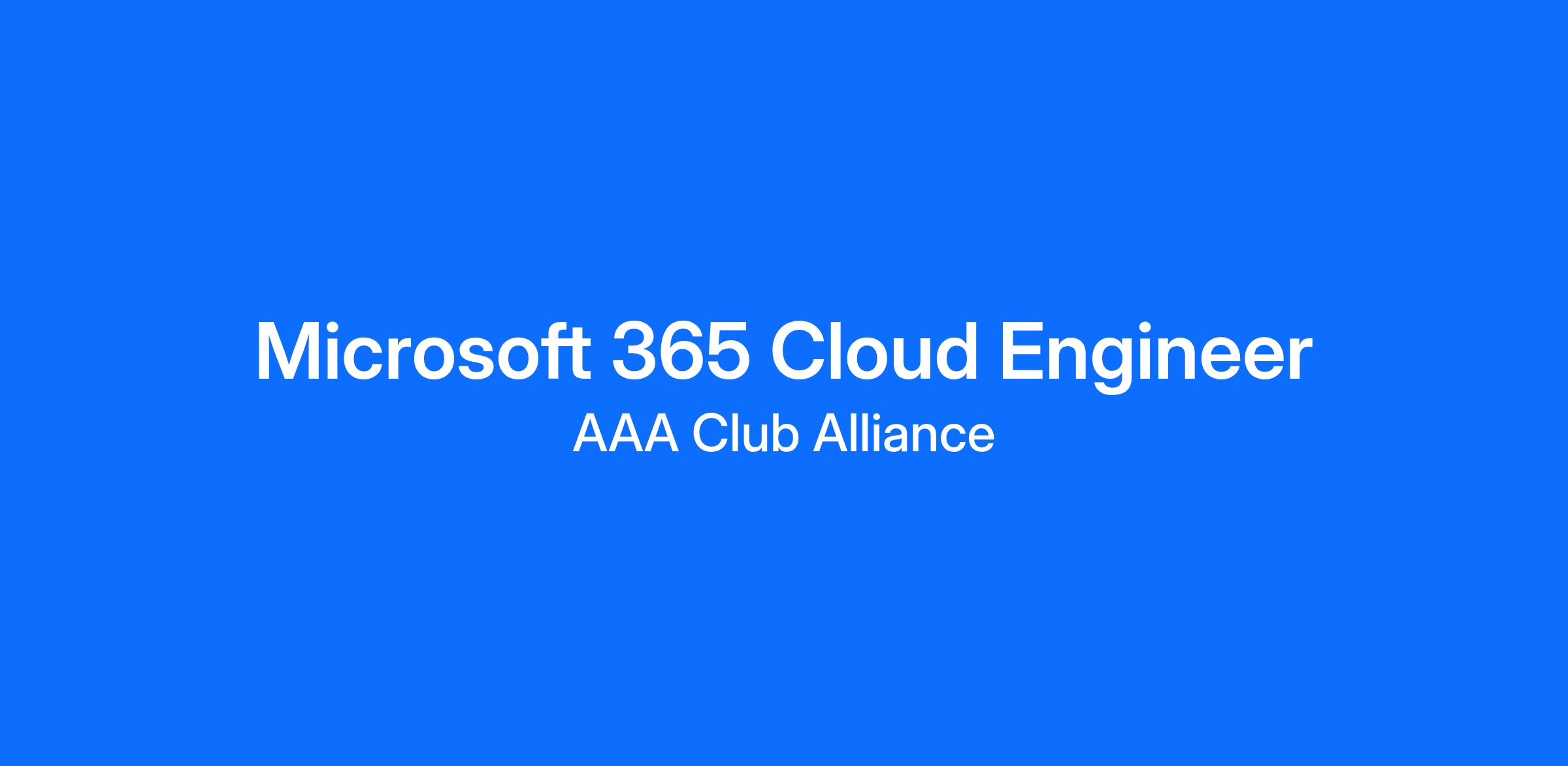 AAA Club Alliance is currently seeking a full-time M365 Cloud Engineer to join our team in one of our 3 locations: Wilmington, DE - Cincinnati, OH, Worthington, OH.