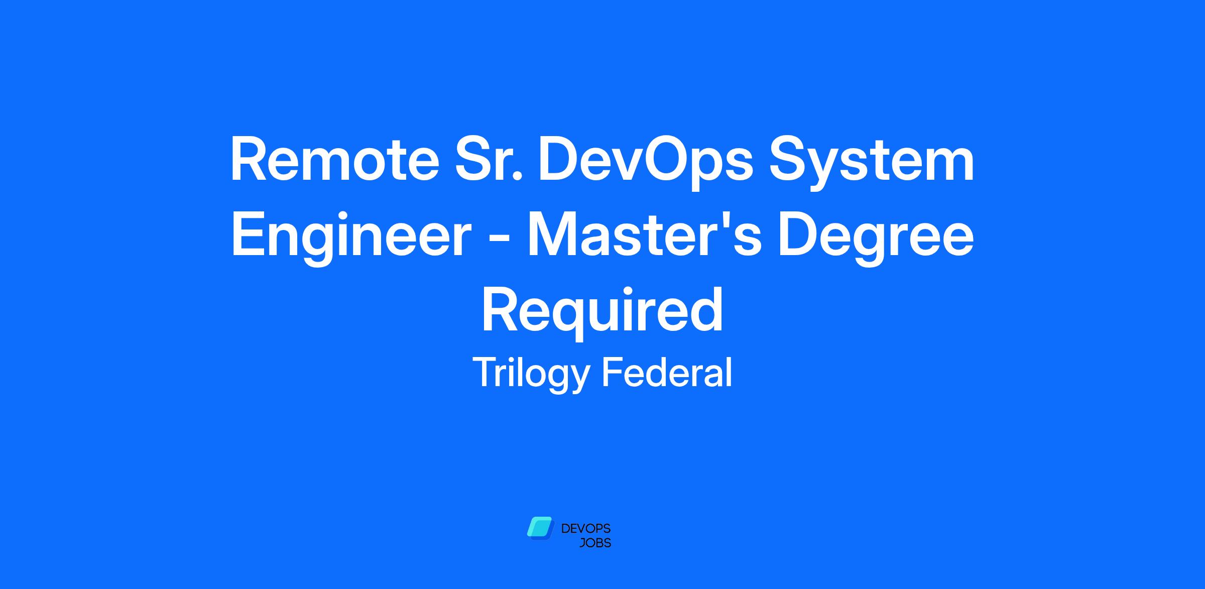 Trilogy Federal is seeking a remote Senior DevOps System Engineer to support the Department of Veterans Affairs (VA) Veteran Canteen Service Automated Information System (VCS AIS). The ideal candidate will be a versatile technical expert with a focus on system reliability through DevOps engineering that fulfills technical, operational, and business requirements while excelling in a fast-paced, client-oriented environment. This position will provide continued technical support for six active, highly visual security remediation projects, break/fix, data mining, and analytics to support VCS AIS. This role requires a collaborative, detail-oriented professional to join our team, implementing secure, scalable cloud-based solutions and DevOps processes to modernize VA corporate IT systems, including legacy applications and DevSecOps initiatives.