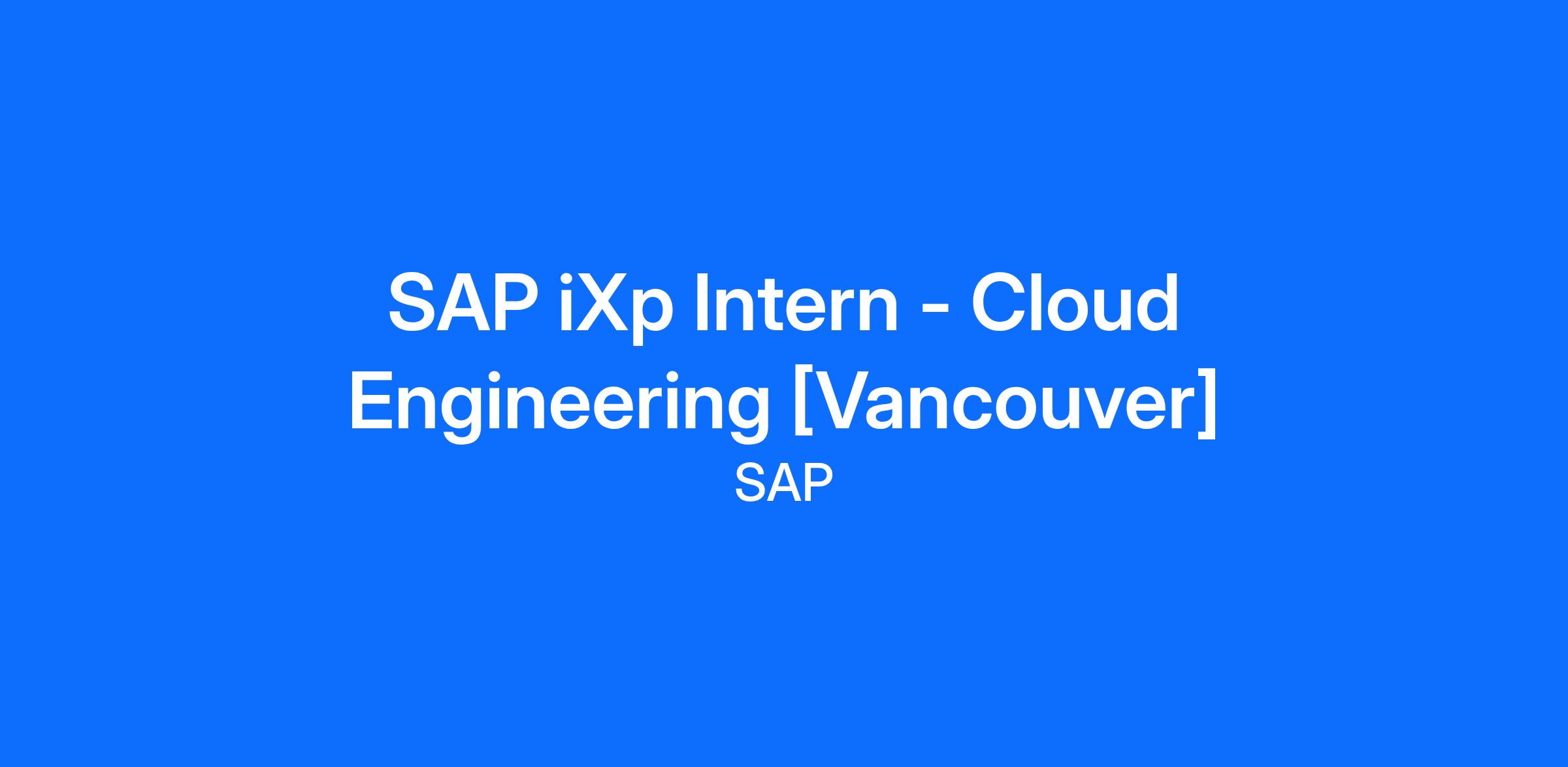 Position Title: SAP iXp Intern - Cloud Engineer