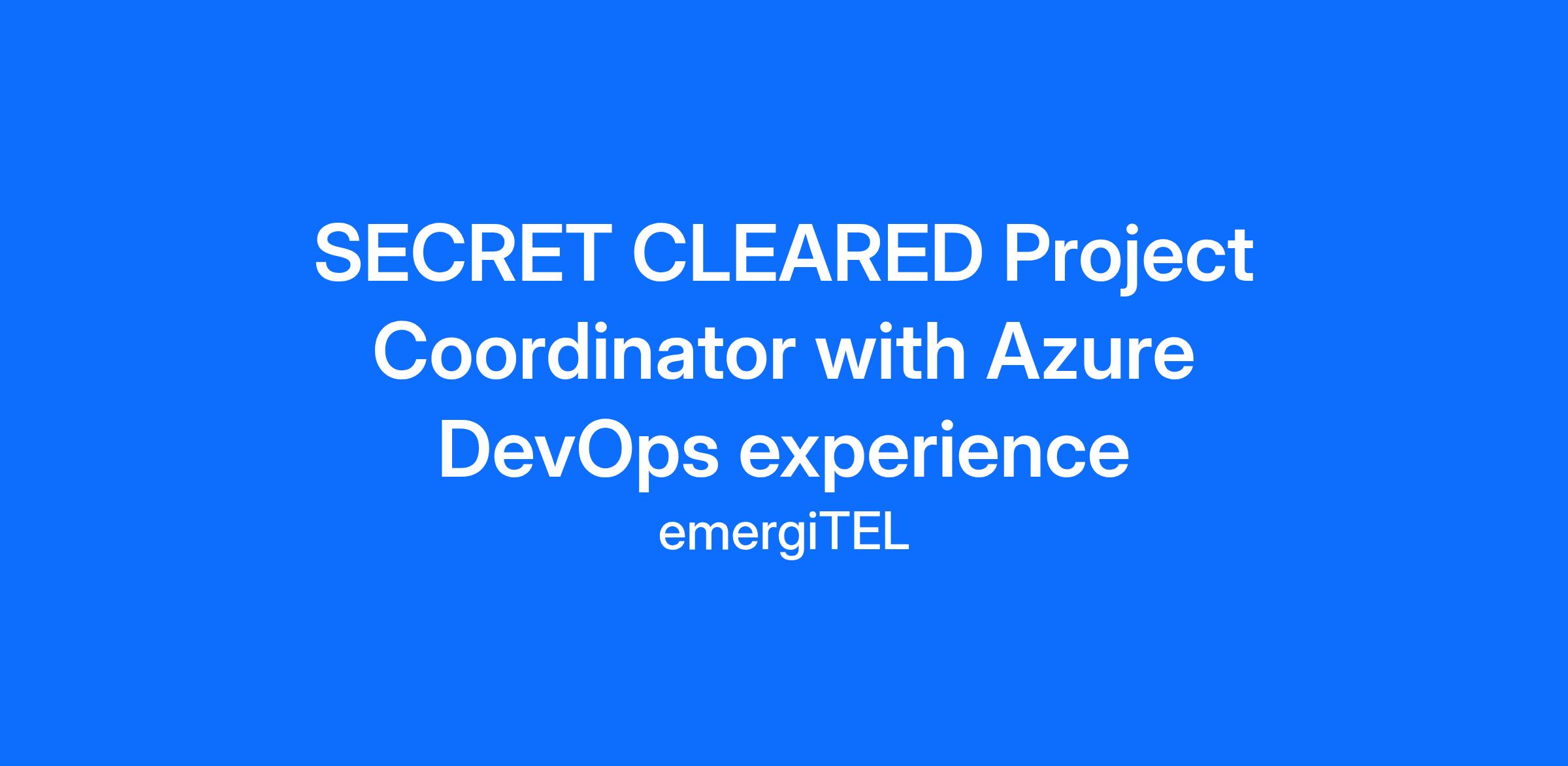 SECRET CLEARED Project Coordinator with Azure DevOps experience