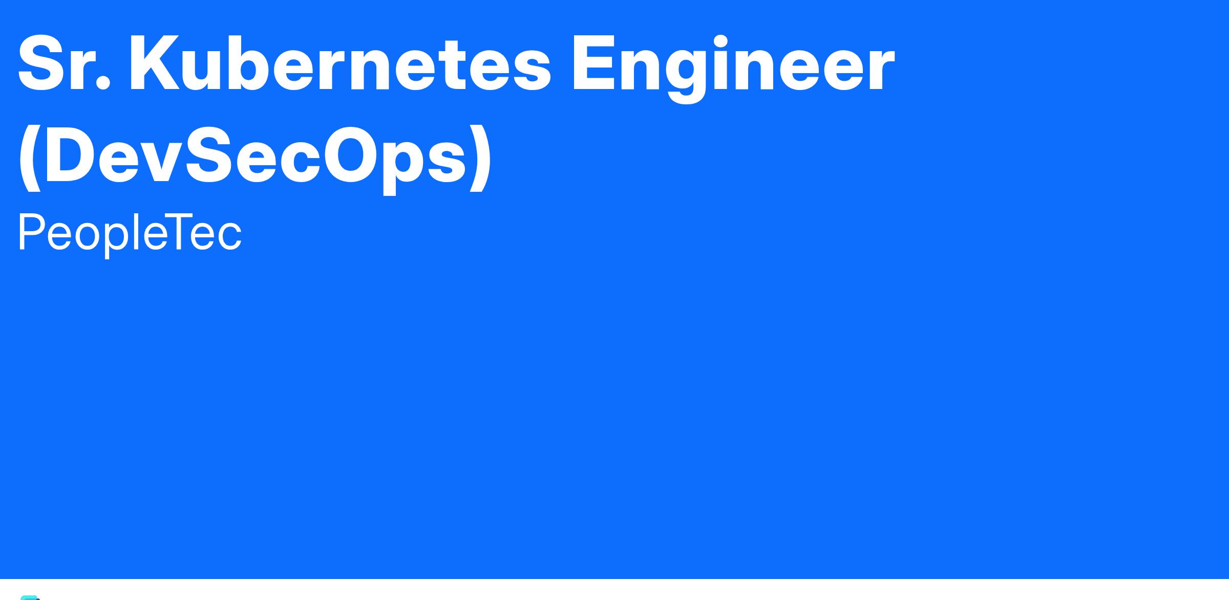 PeopleTec is a company that hires and develops technology talent and puts them to work on client projects across the United States. We specialize in full stack development, Cloud, DevSecOps, Cybersecurity, Artificial Intelligence (AI), Business Intelligence (BI), Data Science, and Machine Learning (ML) related initiatives, both in the federal and commercial space. We are currently seeking a Sr. Kubernetes Engineer (DevSecOps) to support our Huntsville, AL location.