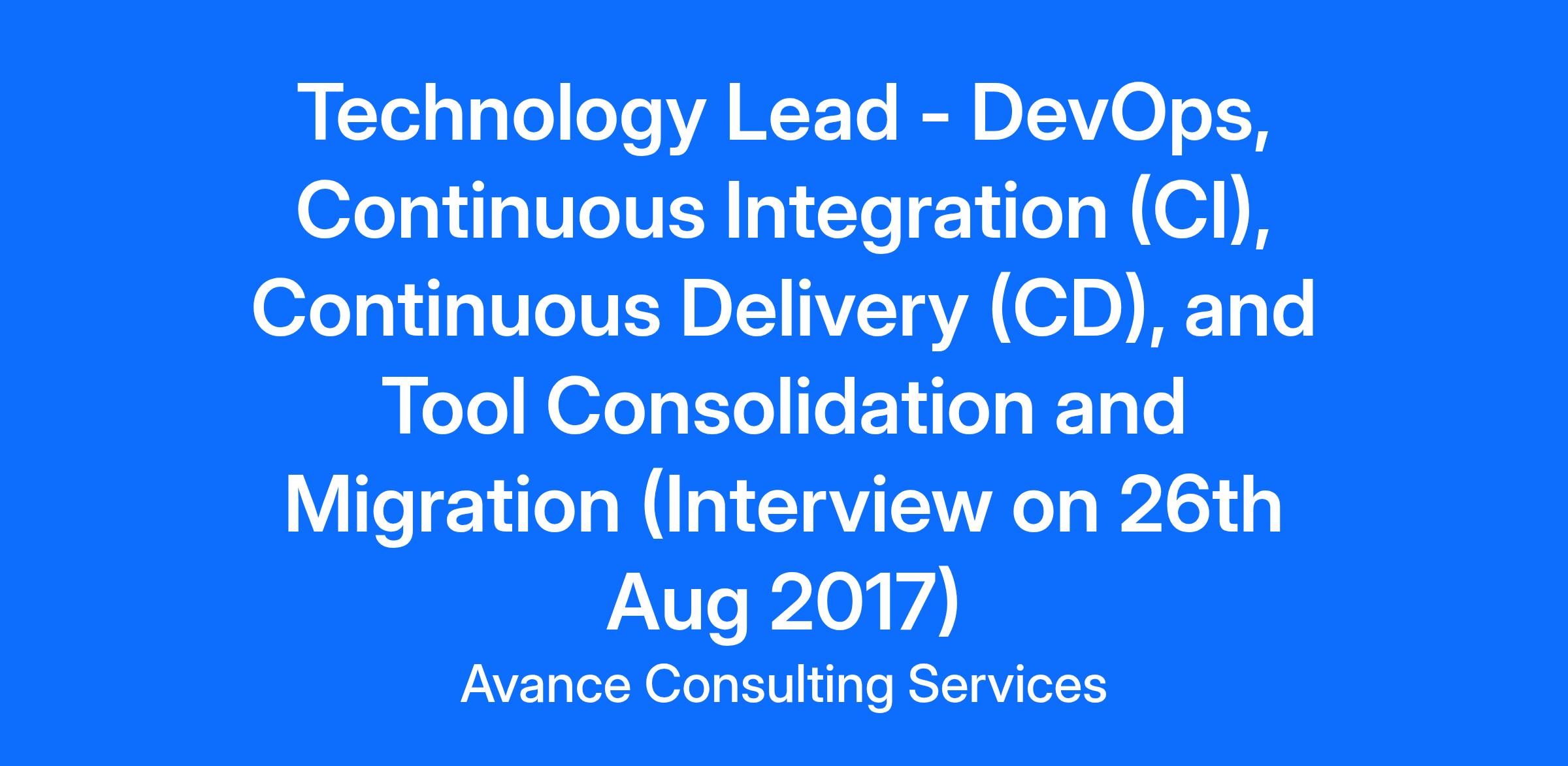 Role: Technology Lead - DevOps, Continuous Integration (CI), Continuous Delivery (CD), and Tool Consolidation and Migration (Interview on 26th Aug 2017)