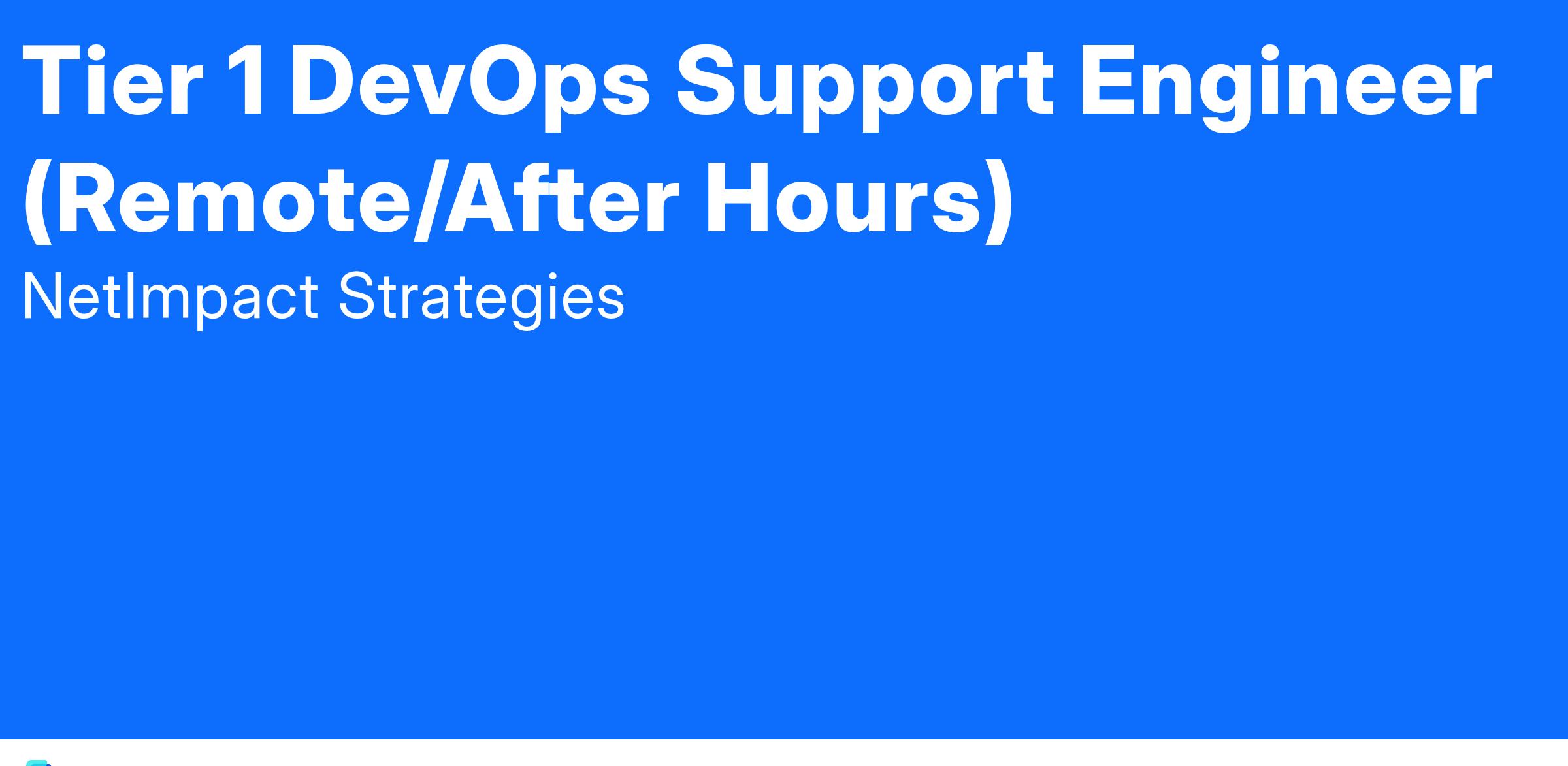 NetImpact Strategies has an opportunity for a part-time, after-hours Tier 1 DevOps Support Engineer to join our talented team in support of a federal customer. This remote role provides critical first-line support for a range of development and operational tools, helping monitor pipelines, triage incidents, and escalate issues related to CI/CD workflows, infrastructure automation, and application deployments.