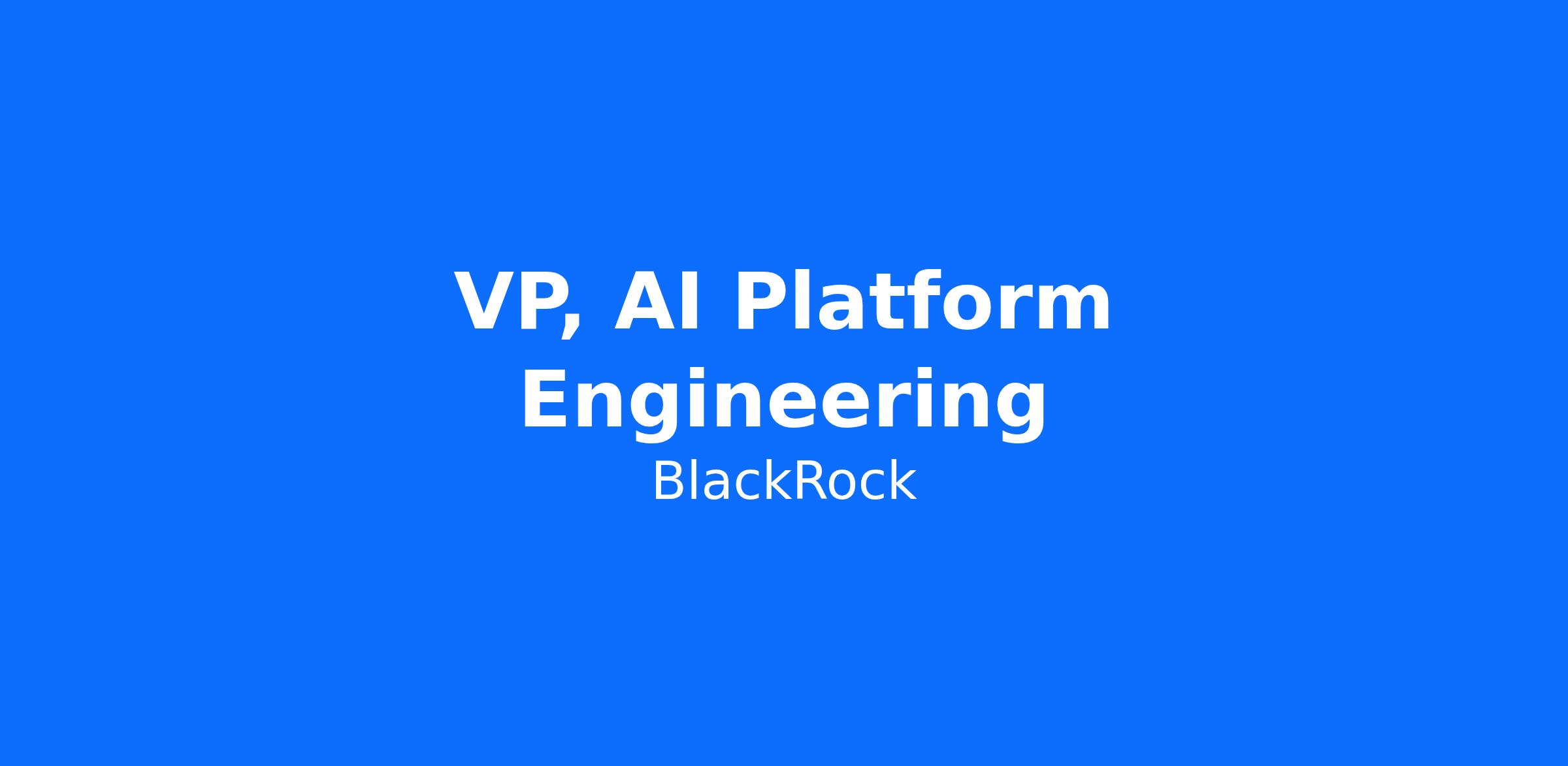 At BlackRock, we are seeking a VP of AI Platform Engineering to lead the design and delivery of enterprise AI capabilities that power technologist enablement, and next-generation platform services. This leader will combine deep technical expertise in modern AI systems with strong engineering execution and organizational leadership. We recognize that strength comes from diversity, and will embrace your unique skills, curiosity, and passion while giving you the opportunity to grow technically and as an individual. With over USD $11 trillion of assets we have an exceptional responsibility, our technology empowers millions of investors to save for retirement, pay for college, buy a home, and improve their financial well-being. As an AI engineering leader at BlackRock, you will help define how AI is safely, securely, and effectively embedded into our engineering ecosystem at scale.